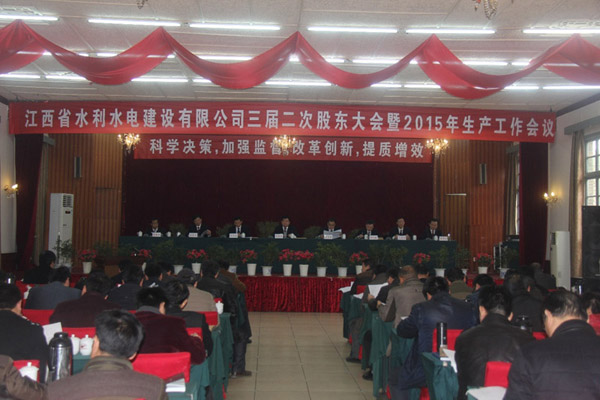 春回大地,萬象更新,正值全國兩會(huì)召開之際,江西省水利水電建設(shè)有限公司第三屆二次股東大會(huì)暨2015年生產(chǎn)工作會(huì)議,于3月10日在南昌隆重召開。公司董事、監(jiān)事、股東、中高層管理人員及員工代表共86名代表會(huì)聚一堂,共商公司改革發(fā)展大計(jì),描繪企業(yè)美好藍(lán)圖。