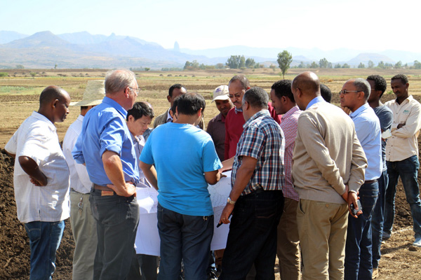 2016年3月20日,埃塞俄比亞聯(lián)邦水利能源部部長Motuma Mekesa閣下及副部長Kebede Gerba閣下帶領(lǐng)水利能源部尼羅河灌溉項目協(xié)調(diào)辦、阿姆哈拉州土地管理局、阿姆哈拉州尼羅河灌溉項目協(xié)調(diào)辦等項目各參建單位負責(zé)人到我公司承建的埃塞俄比亞Ribb一期灌溉項目視察。