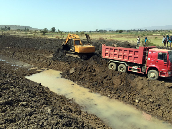 部長Motuma Mekesa一行于上午抵達項目施工現(xiàn)場,隨后對項目渠首及總渠段進行參觀考察。埃塞公司副總經(jīng)理兼項目經(jīng)理黃生寶向部長介紹了建設(shè)項目概況及項目施工進度,就項目設(shè)計、征地等提出了建設(shè)性意見和建議,表達了以“服務(wù)社會”為宗旨,與各方一道以最快的速度推進項目建設(shè)的積極態(tài)度。項目經(jīng)理黃生寶表示,我們將秉承我公司“健行天下,堰筑大同”的精神,以最好的質(zhì)量,最快的速度保證項目的實施。部長先生對我們的現(xiàn)場建設(shè)以及積極的態(tài)度表示了肯定,要求設(shè)計、征地以及業(yè)主單位積極與施工單位合作,保證項目施工質(zhì)量,加快項目施工速度。同時,相信我公司能堅定信心,積極應(yīng)對困難與挑戰(zhàn),在有限的時間內(nèi)圓滿完成任務(wù)。